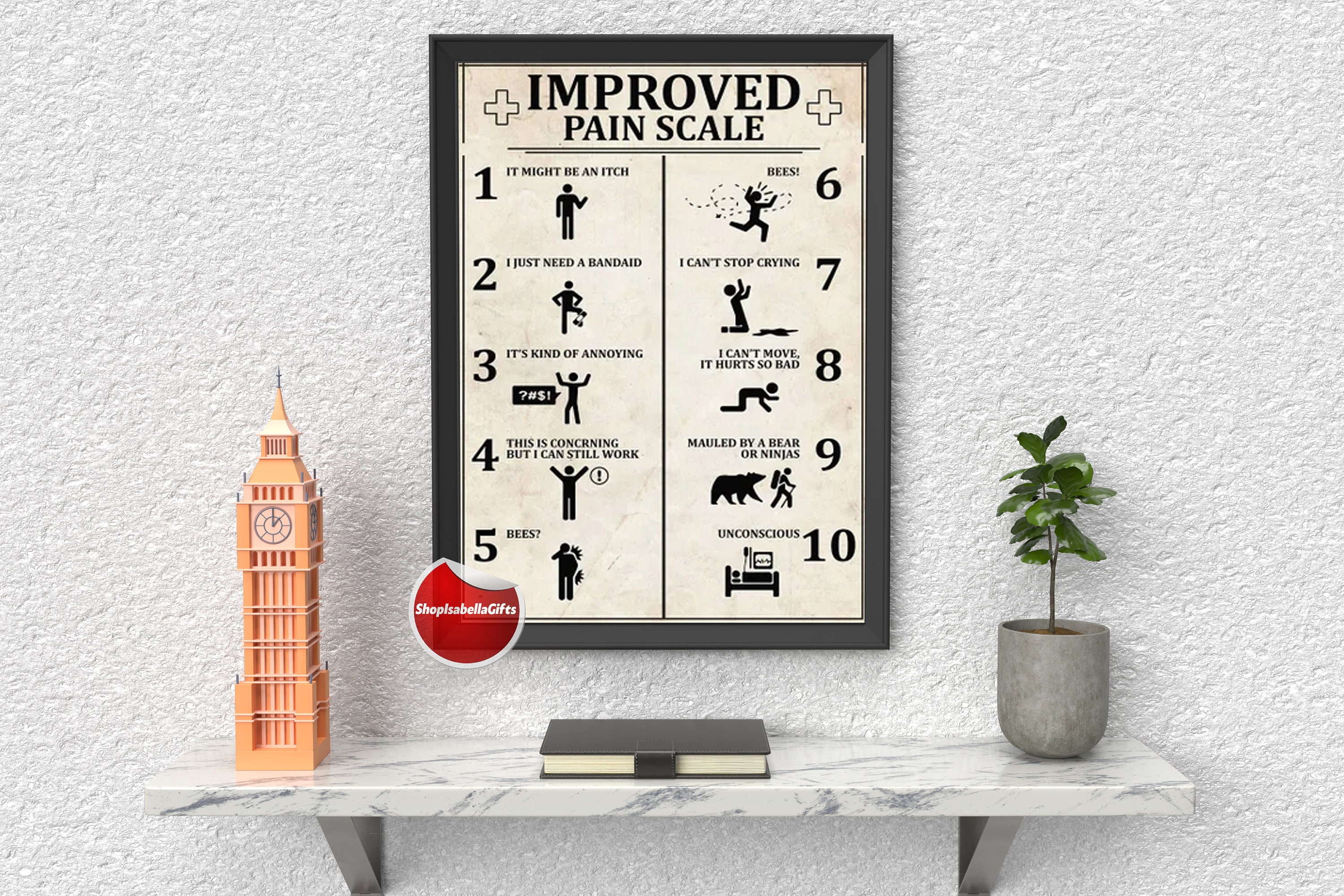Improved Pain Scale Funny Poster Mental Health Wall Art Etsy